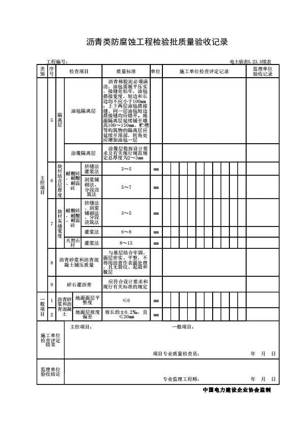 表格名称:电土验表5.23.3 沥青类防腐蚀工程检验批质量验收记录