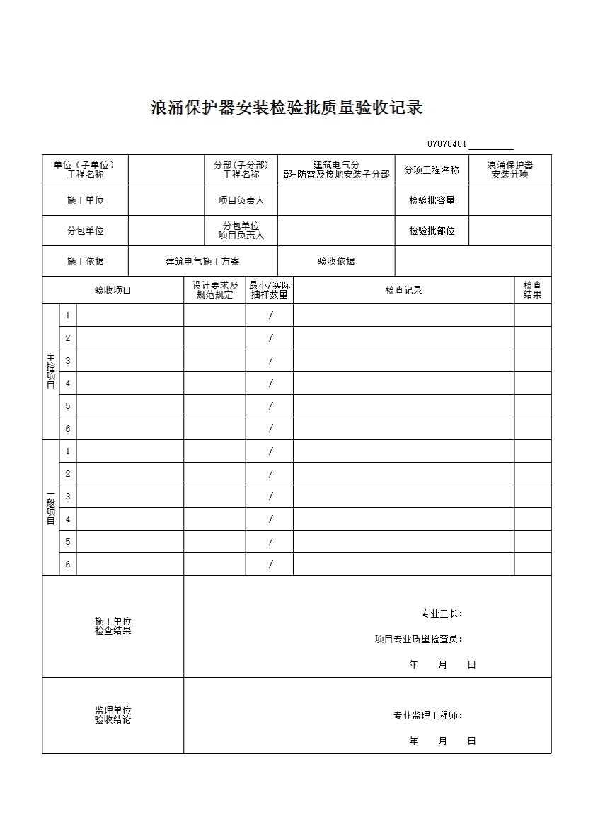 表格名称:07070401_浪涌保护器安装检验批质量验收记录