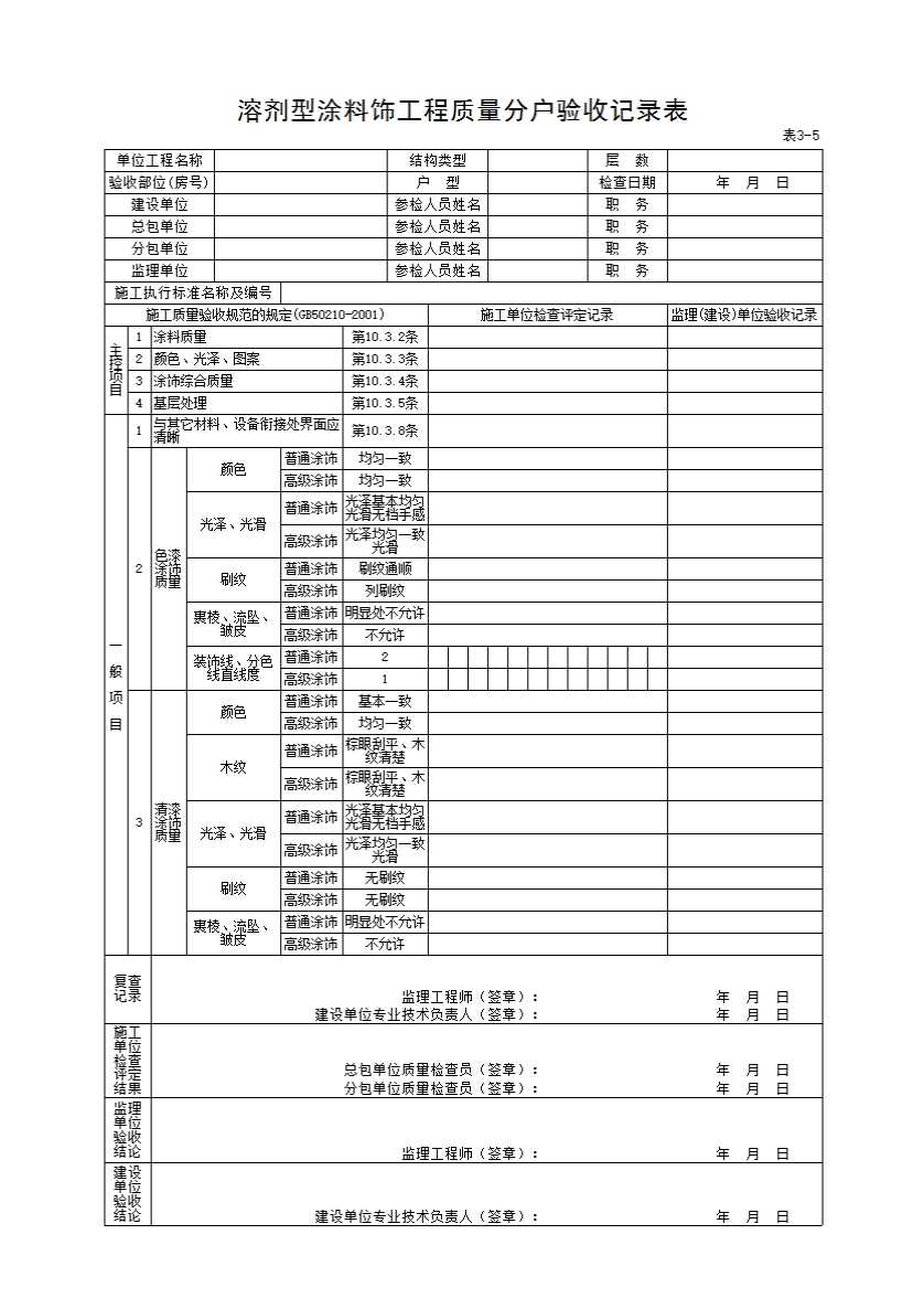 3-5溶剂型涂料饰工程质量分户验收记录表