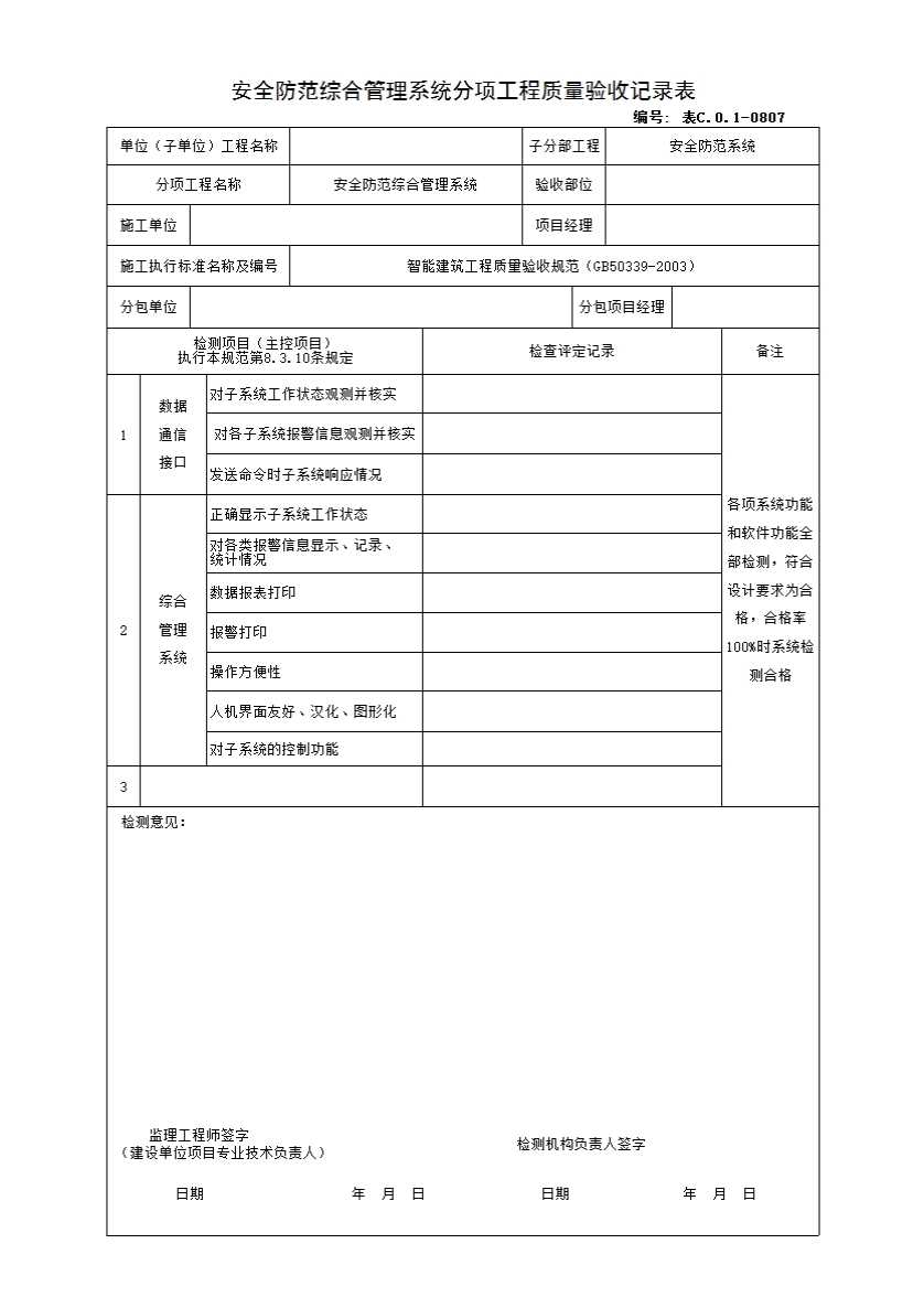 C.0.1-0807 安全防范综合管理系统分项工程质量验收记录表