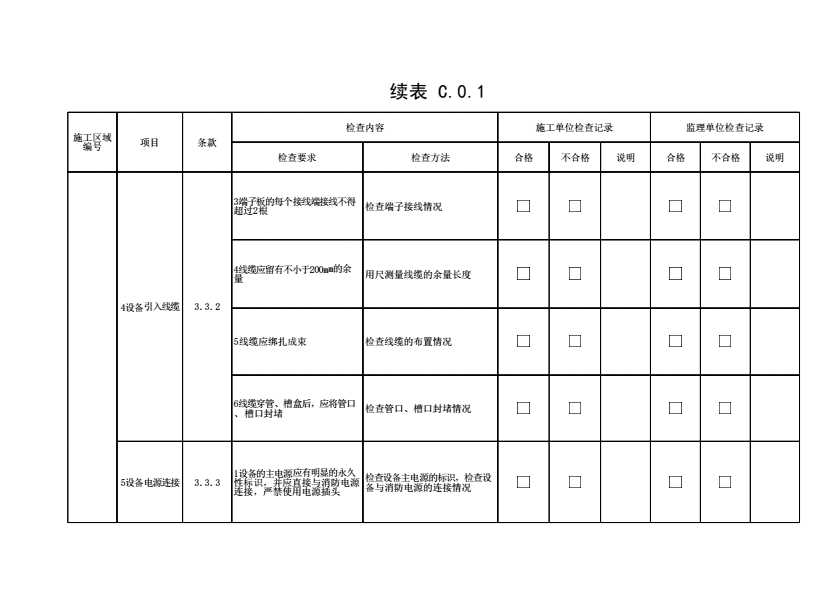 附录C 火灾自动报警系统材料、设备、配件进场检查和安装过程质量检查记录