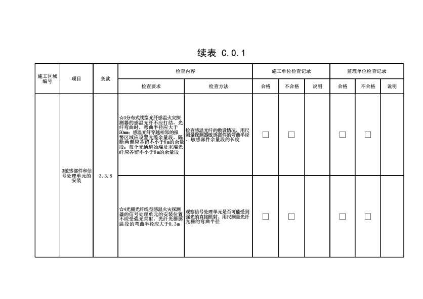 附录C 火灾自动报警系统材料、设备、配件进场检查和安装过程质量检查记录