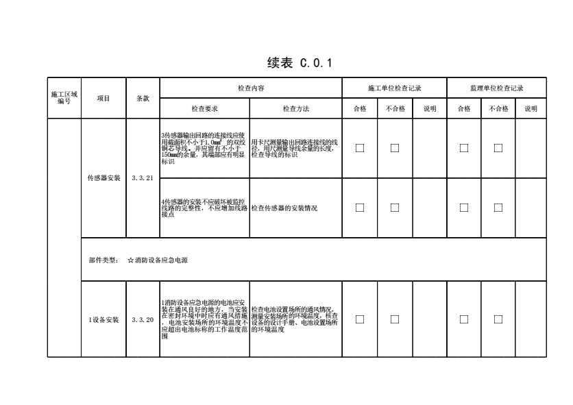附录C 火灾自动报警系统材料、设备、配件进场检查和安装过程质量检查记录