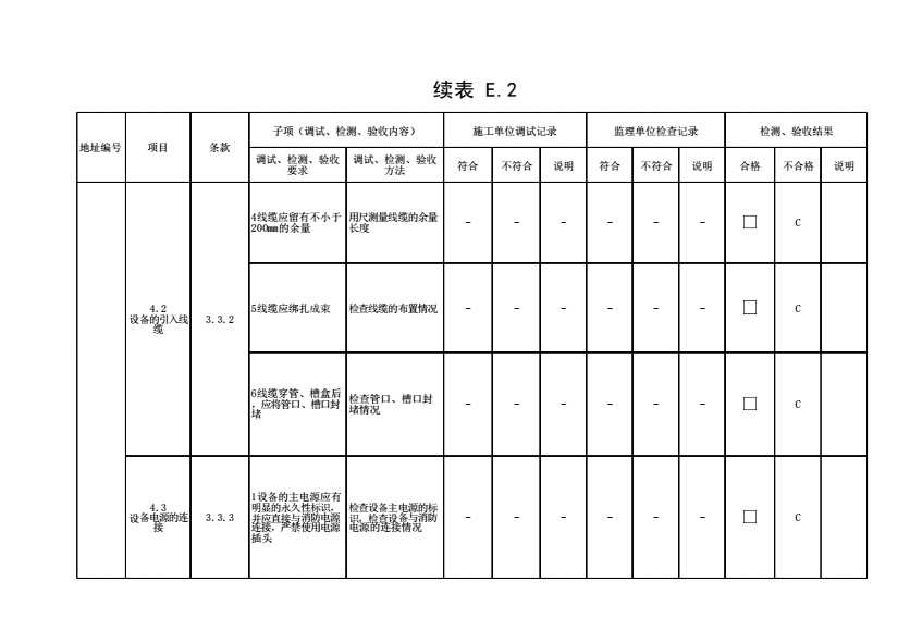 表格名称:表E.2 家用火灾安全系统调试、检测、验收记录(续表9)