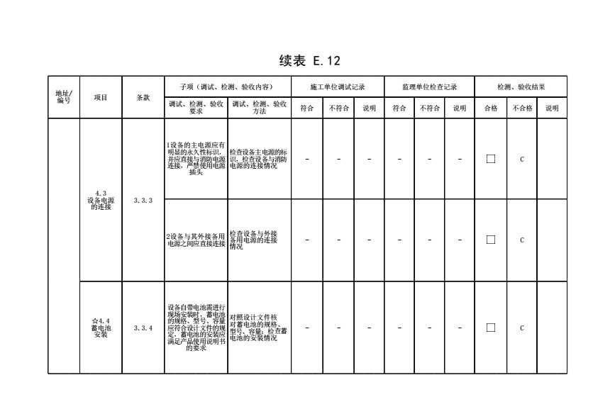 表格名称:表E.12 气体、干粉灭火系统调试、检测、验收记录(续表3)
