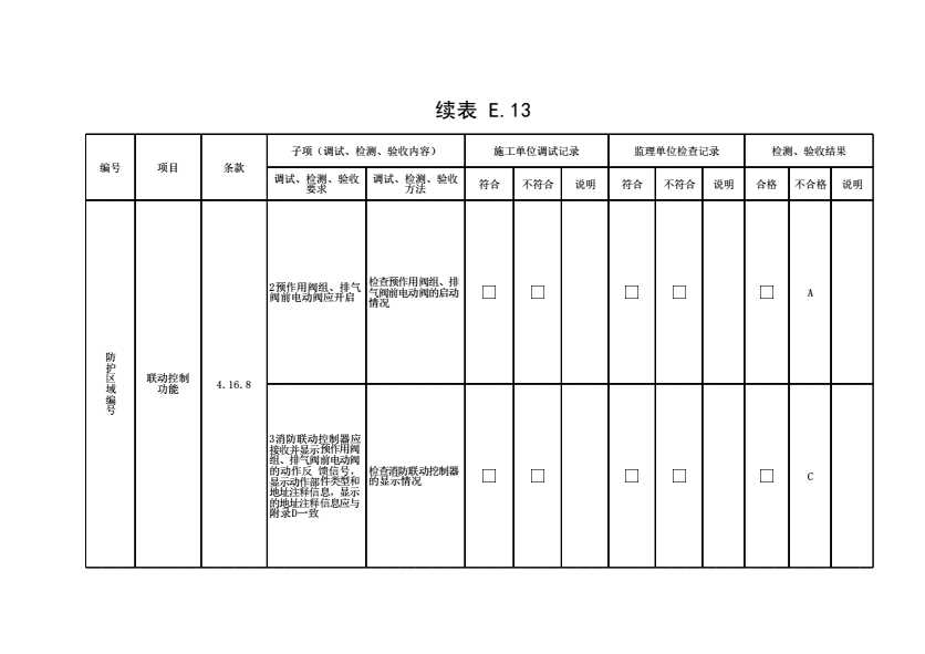 表格名称:表E.13 自动喷水灭火系统调试、检测、验收记录(续表10)