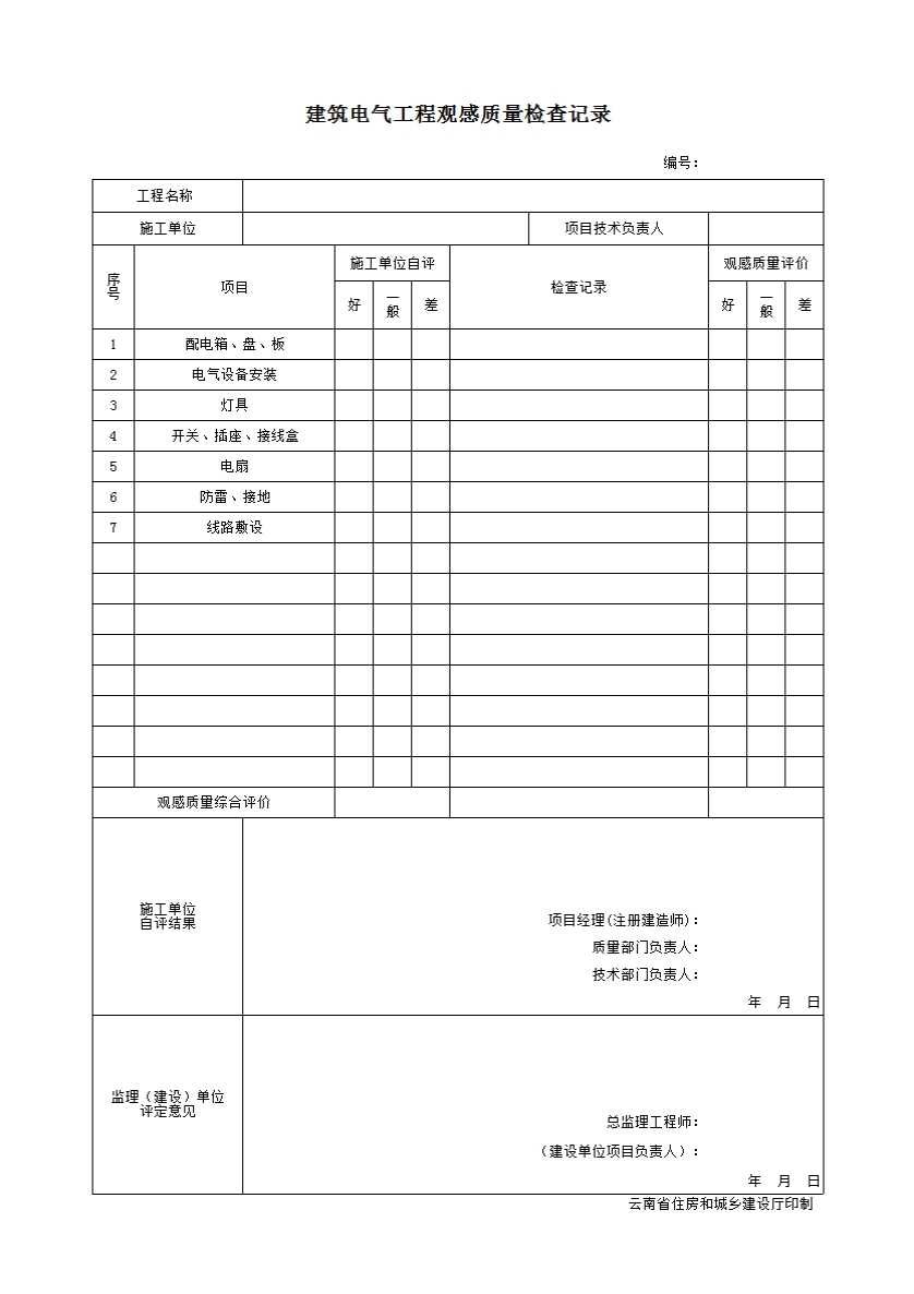 表格名称:6 建筑电气工程观感质量检查记录