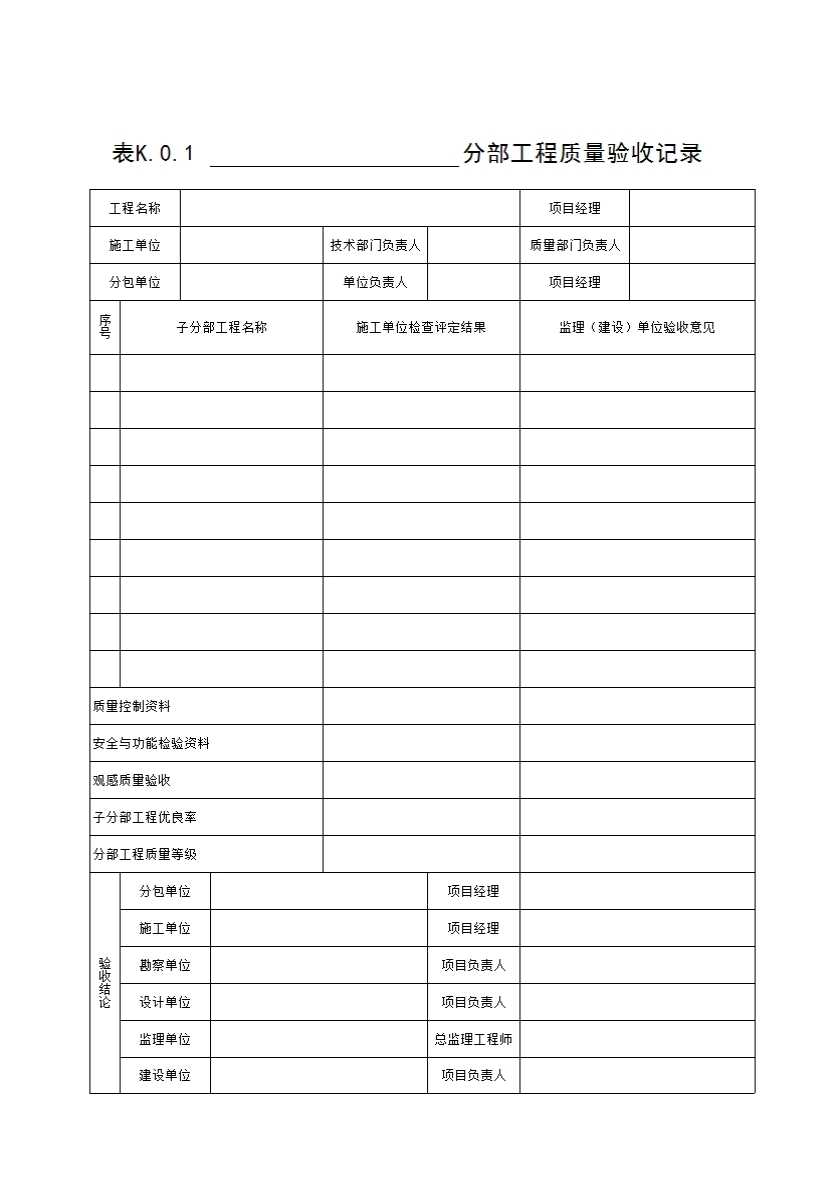 表格名称:表K.0.1 ____分部工程质量验收记录