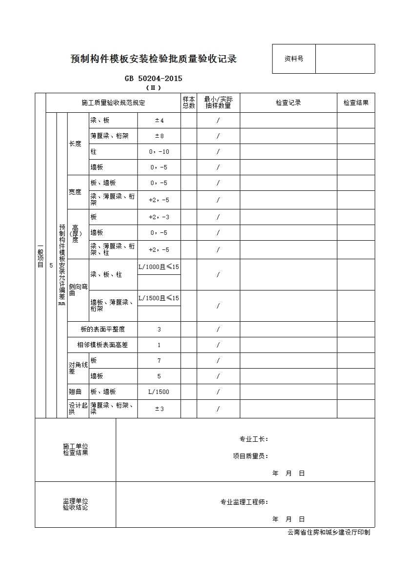 检查数量:首次使用及大修后的模板应全数检查;使用中的模板应抽查10%,且不应少于5件,不足5件时应全数检查。