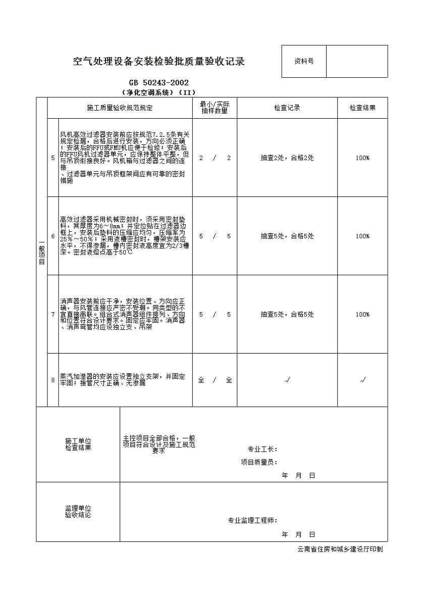 空气设备处理安装检验批质量验收记录)(净化空调系统)