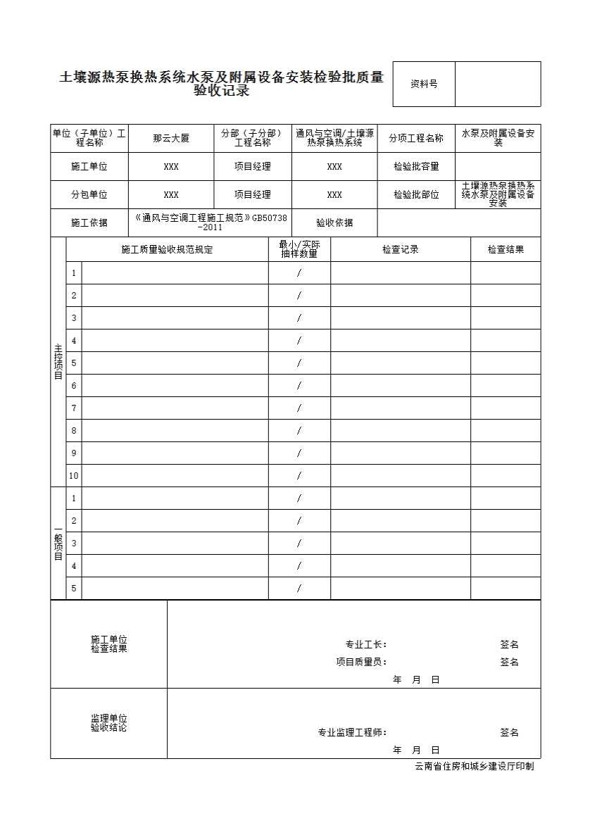表格名称:06130201_土壤源热泵换热系统水泵及附属设备安装检验批质量验收记录