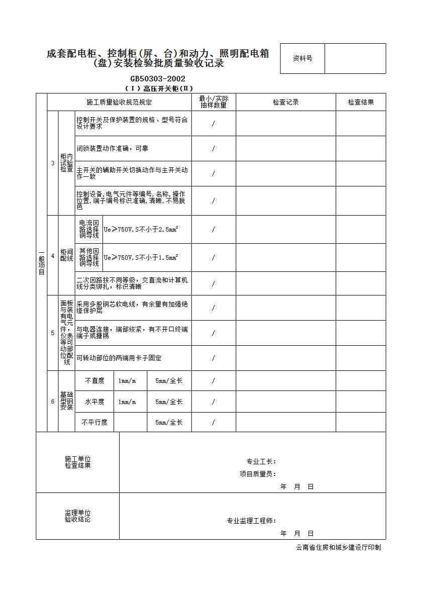 成套配电柜、控制柜(屏、台)和动力、照明配电箱(盘)安装检验批质量验收记录