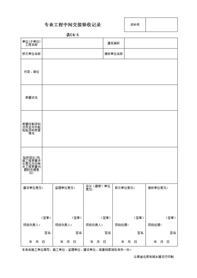 表格名称:表C4-5 专业工程中间交接验收记录05