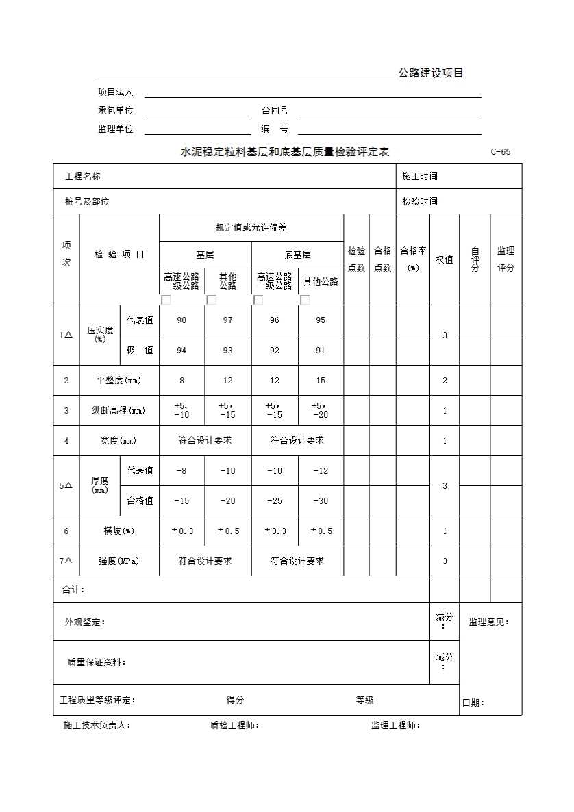 C-65 水泥稳定粒料基层和底基层质量检验评定表
