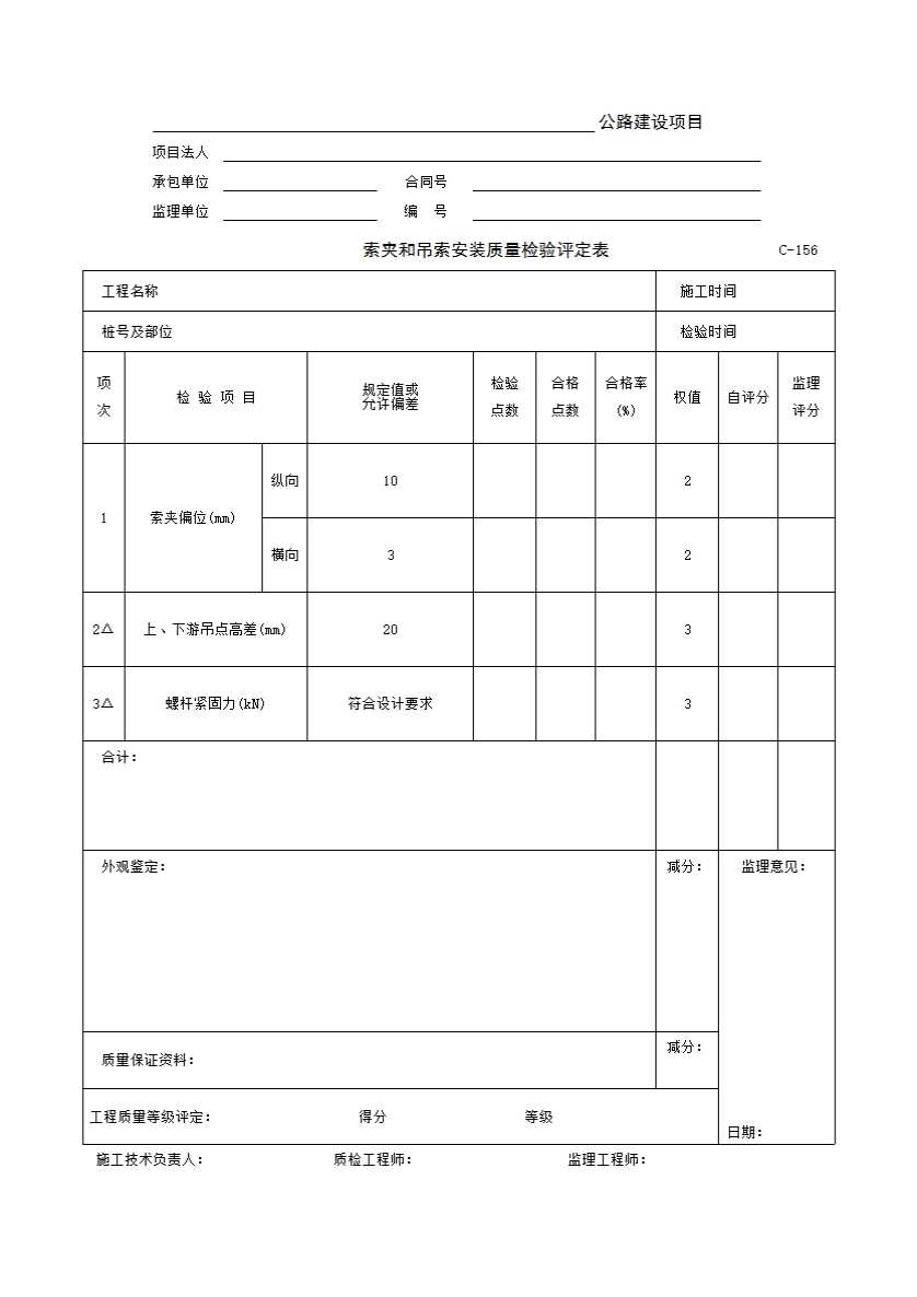 表格名称:C-156 索夹和吊索安装质量检验评定表