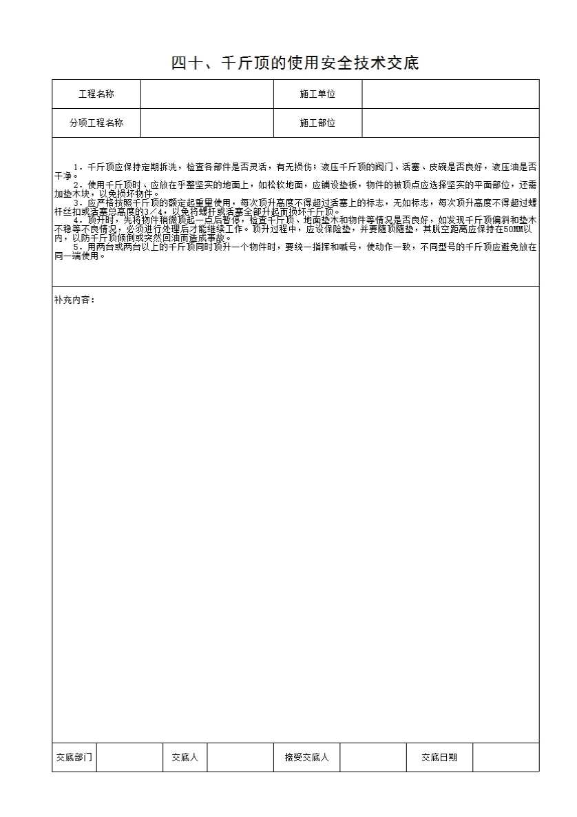 表格名称:40、千斤顶的使用安全技术交底