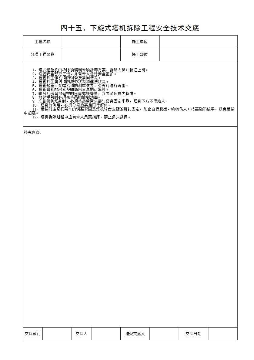 表格名称:45、下旋式塔机拆除工程安全技术交底