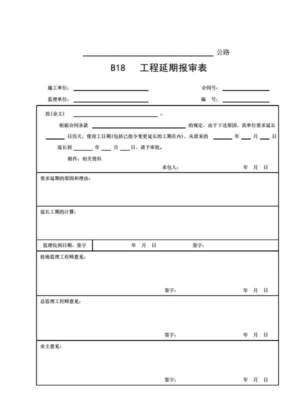 B18 工程延期报审表