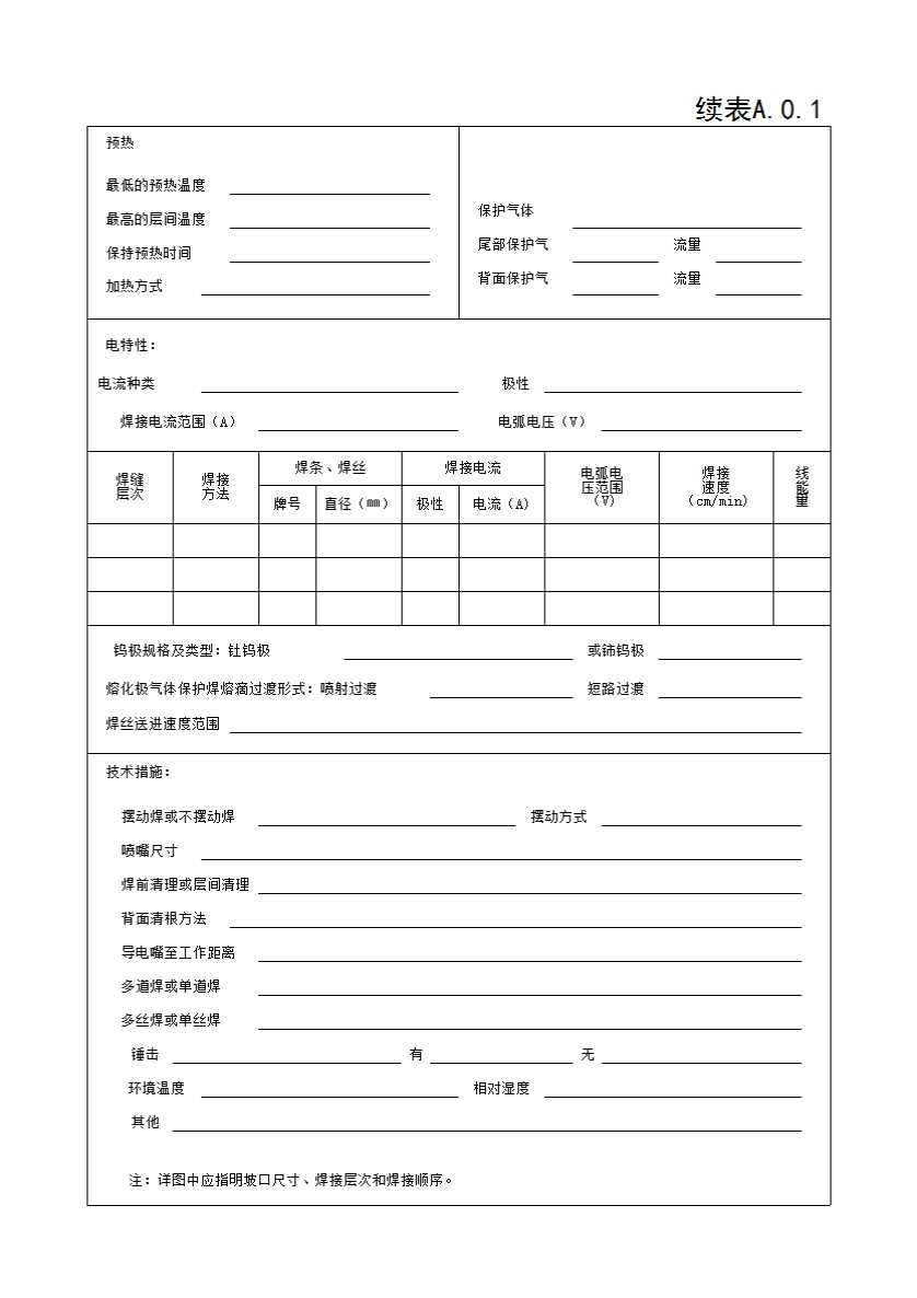 表格名称:焊接作业指导书