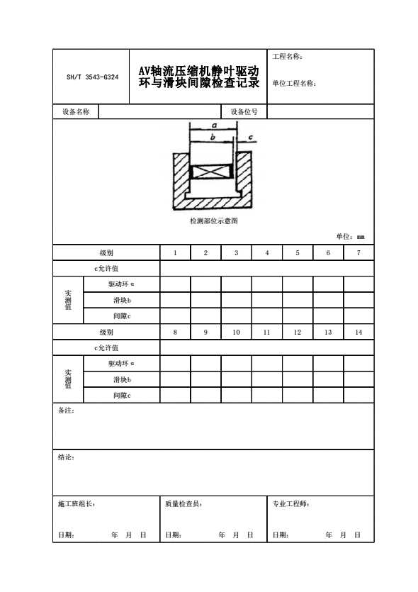 SH/T 3543-G324 AV轴流压缩机静叶驱动环与滑块间隙检查记录