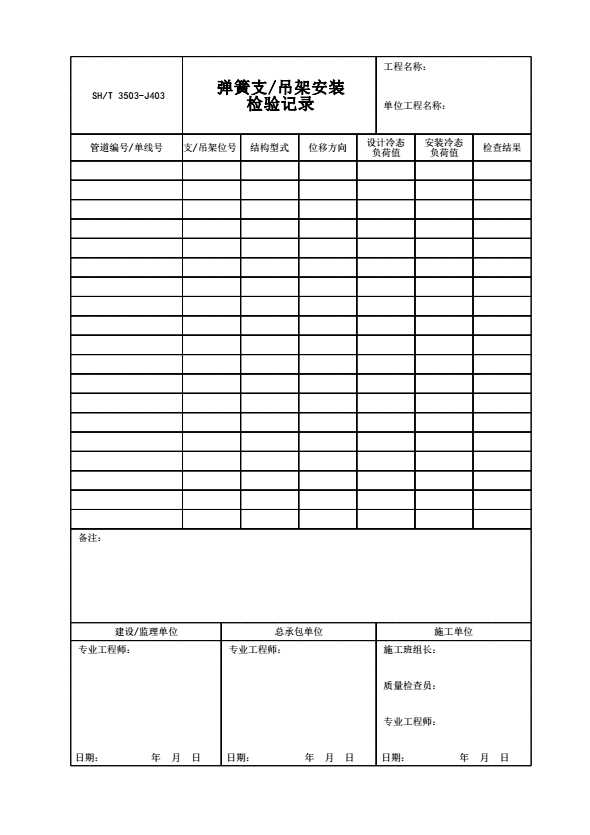 SH/T 3503-J403 弹簧支/吊架安装检验记录