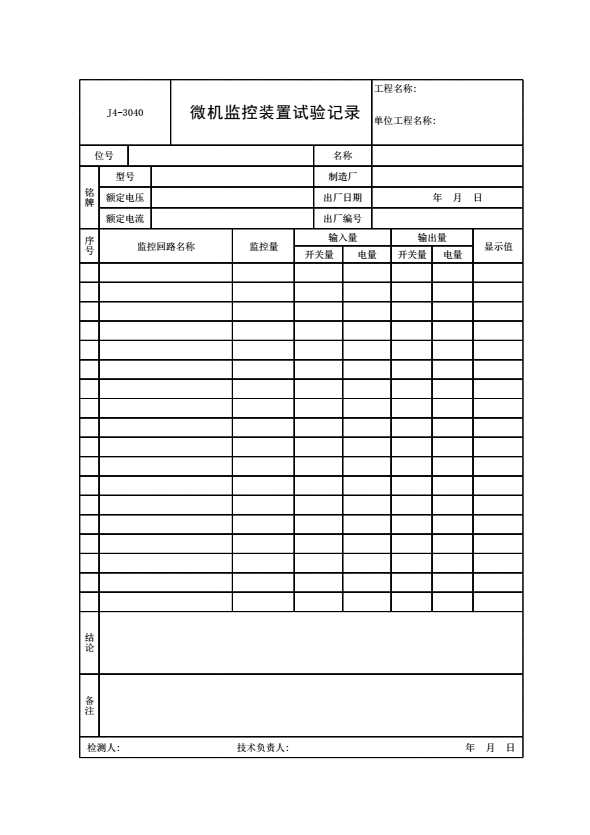 表格名称:J4-3040 微机监控装置试验记录