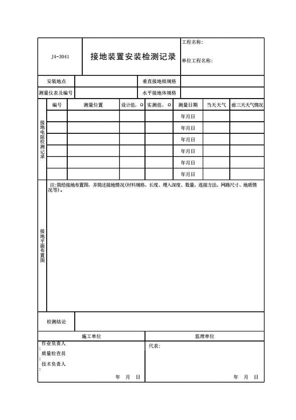 J4-3041 接地装置安装检测记录