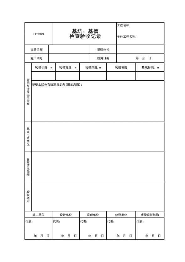 表格名称:J4-6001 基坑、基槽检查验收记录