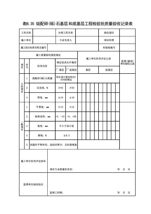 表格名称:表B.35 级配碎(砾)石基层和底基层工程检验批质量验收记录表