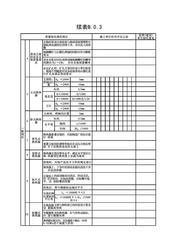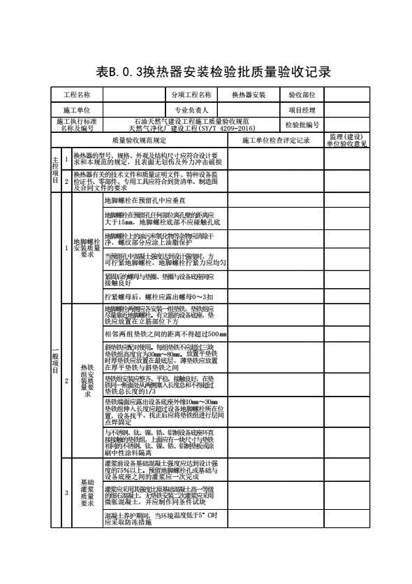 表格名称:表B.0.3 换热器安装检验批质量验收记录
