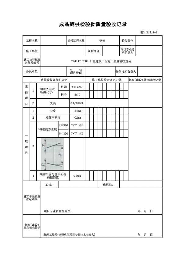 表格名称:表3.3.5.4-1 成品钢桩检验批质量验收记录