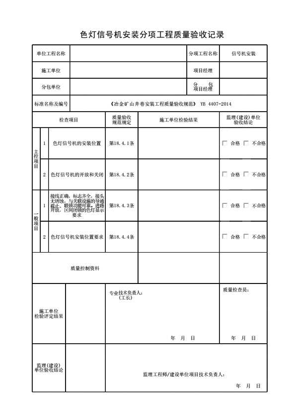 YB 4407-2014 冶金矿山井巷安装工程质里验收规范