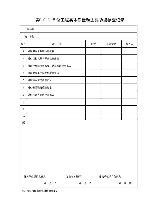 表F.0.3 单位工程实体质量和主要功能核查记录