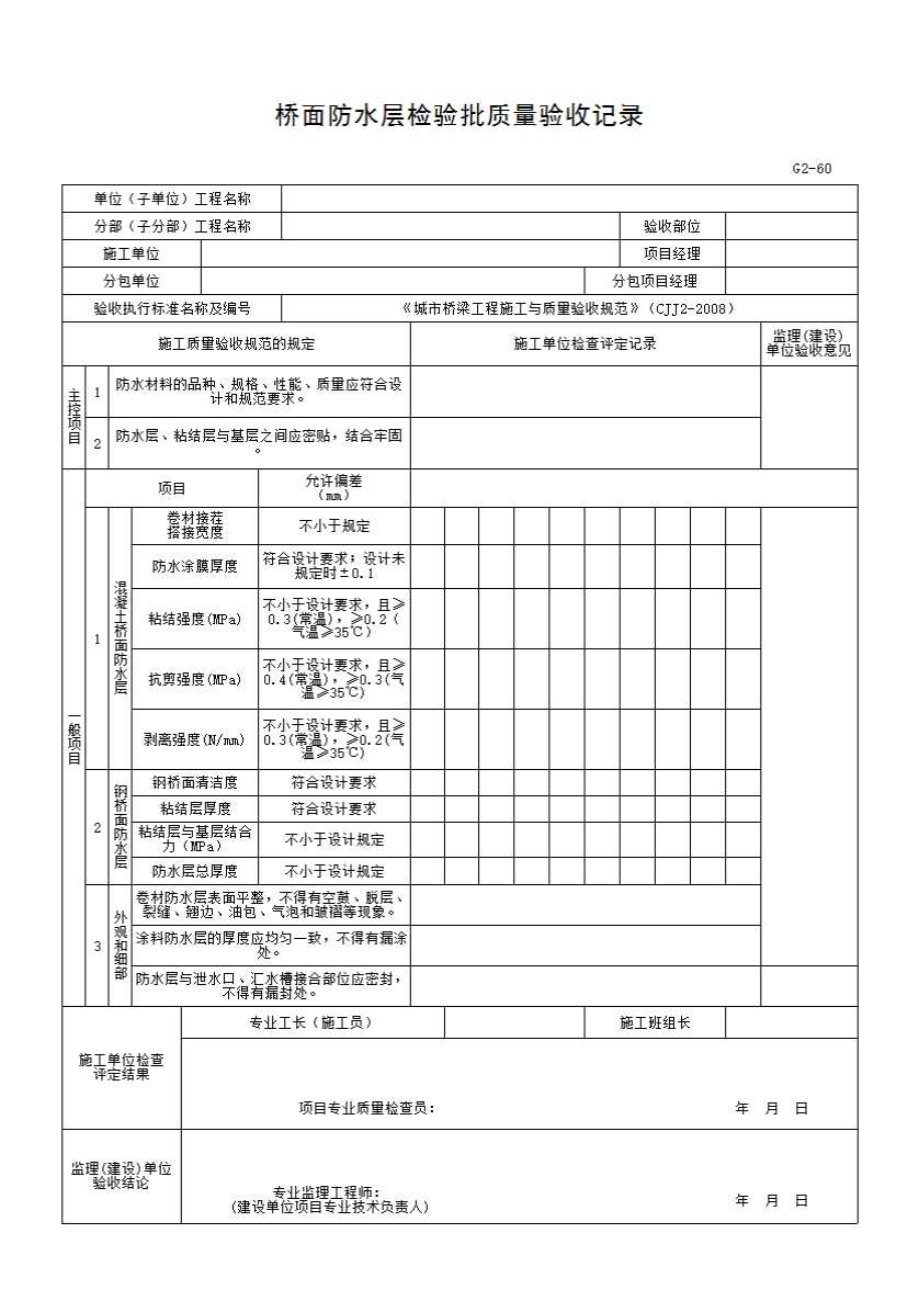 G2 桥梁工程施工质量验收专用表