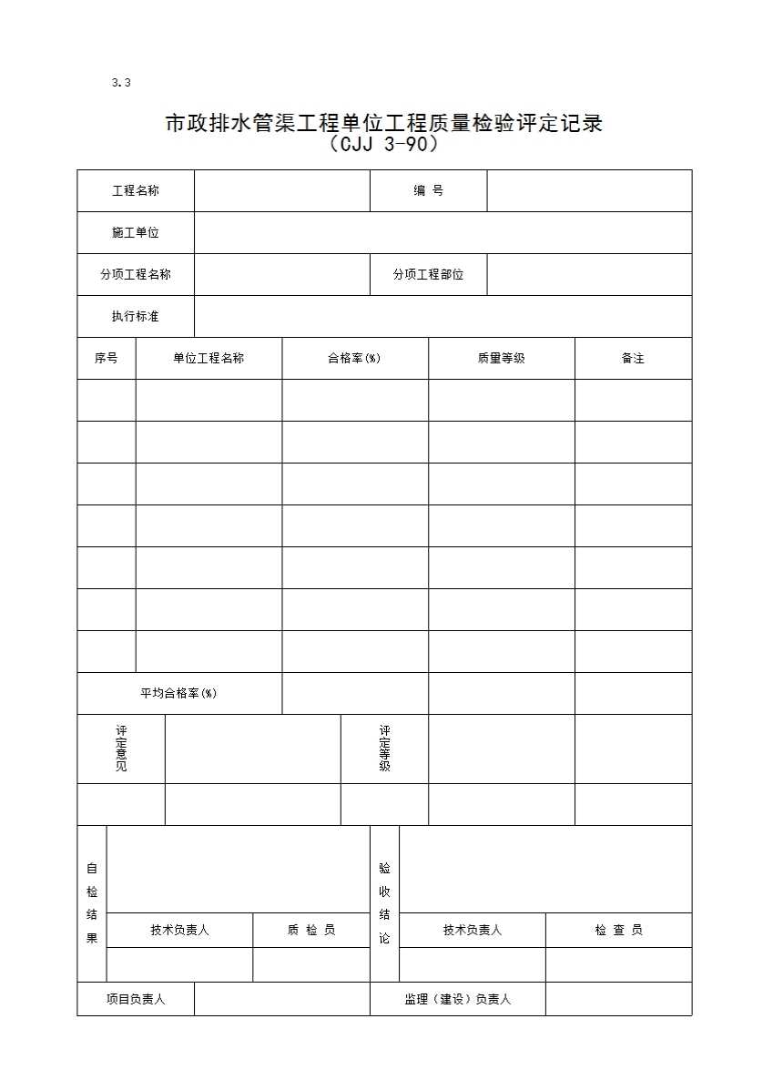 3.3 市政排水管渠工程单位工程质量检验评定记录