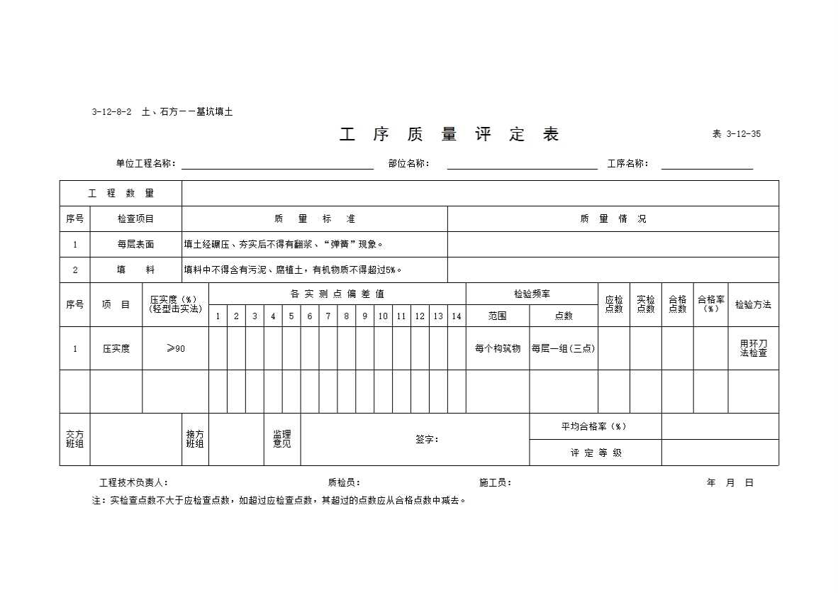 表格名称:工序质量评定表(土、石方-基坑填土)