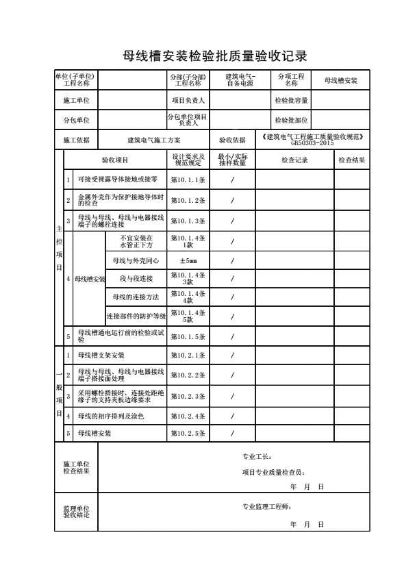 10.1.5 母线槽通电运行前应进行检验或试验,并应符合下列规定: