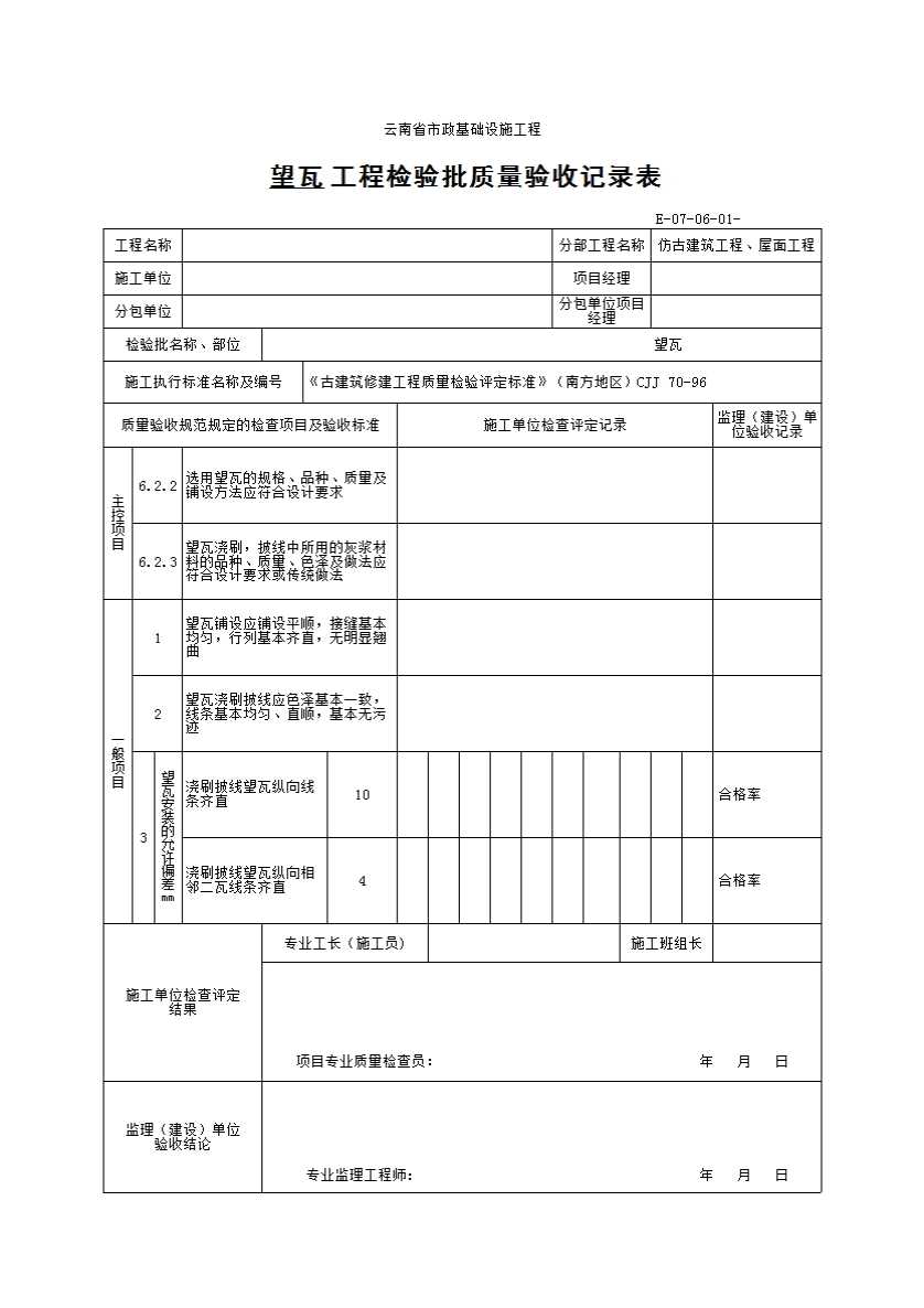 表格名称:07060102 望瓦工程检验批质量验收记录表