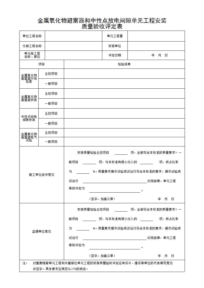 金属氧化物避雷器和中性点放电间隙单元工程安装质量验收评定表