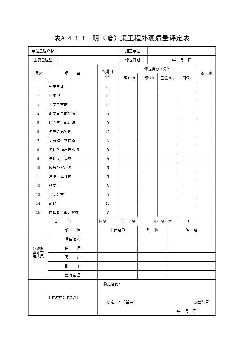 表格名称:表A.4.1-1 明(暗)渠工程外观质量评定表