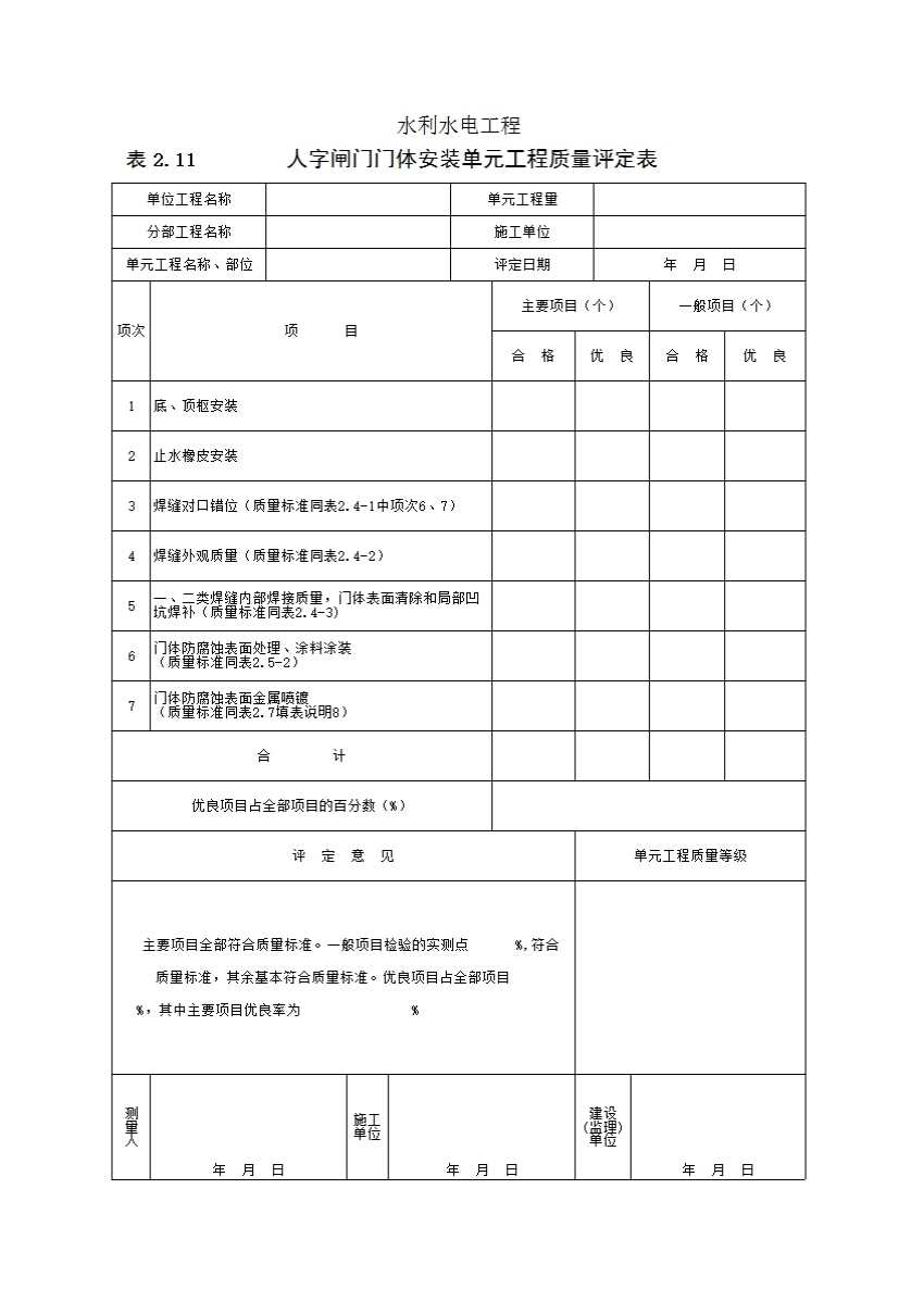 表格名称:表2.11 人字闸门门体安装单元工程质量评定表