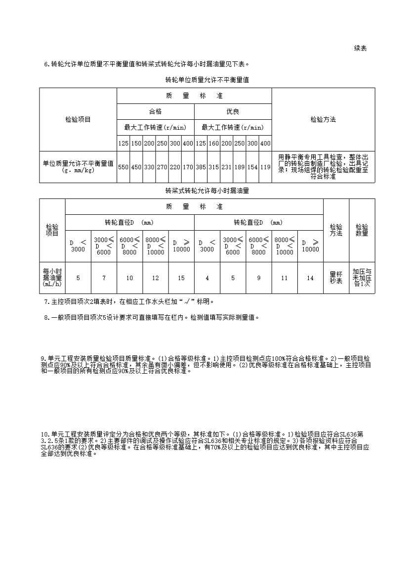 表6.1.5 转轮装配单元工程安装质量验收评定表