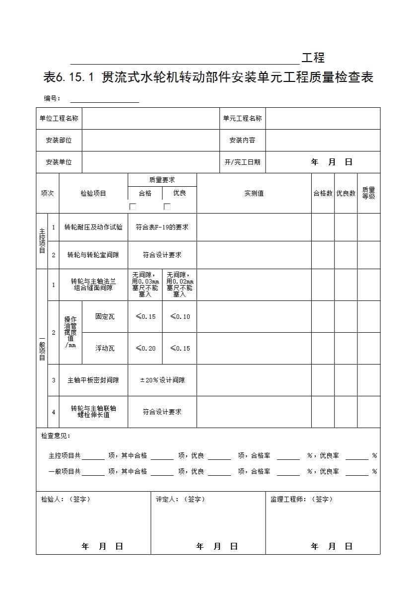 表格名称:表6.15.1 贯流式水轮机转动部件安装单元工程质量检查表