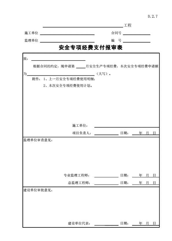 D.2.7 安全专项经费支付报审表