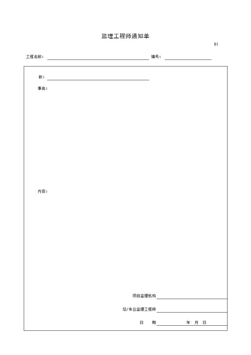表格名称:B1监理工程师通知单