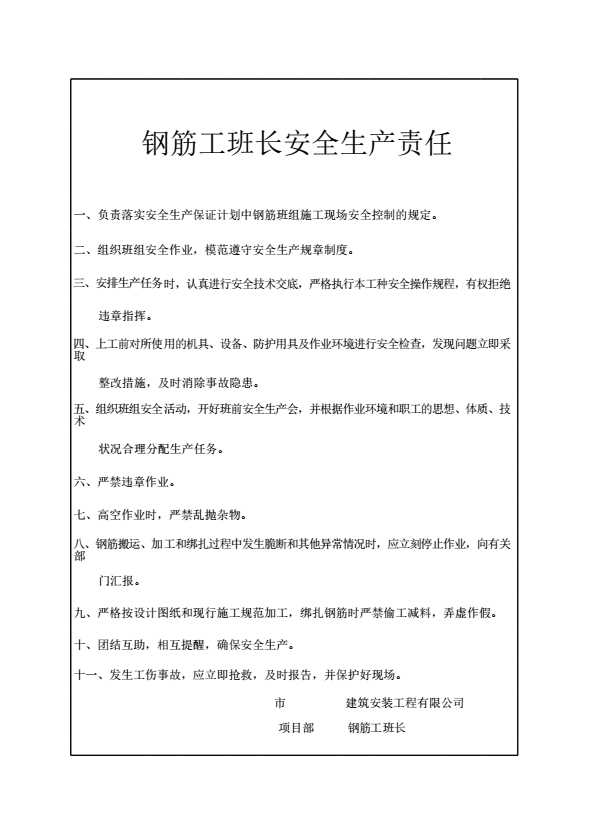 工程项目部各部门和各级人员安全生产岗位责任制安1—4