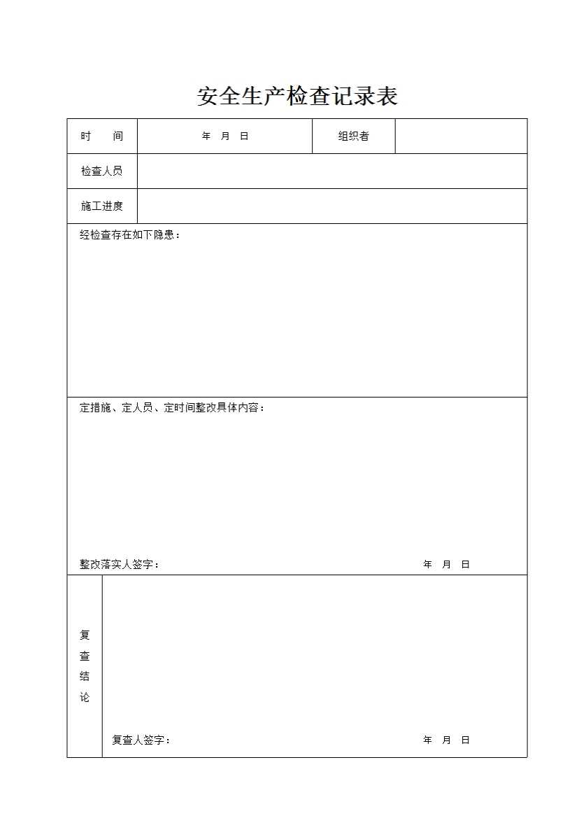 表格名称:安全生产检查记录表