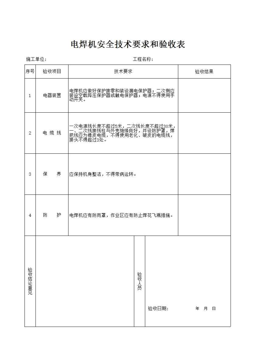 23 电焊机安全技术要求和验收表