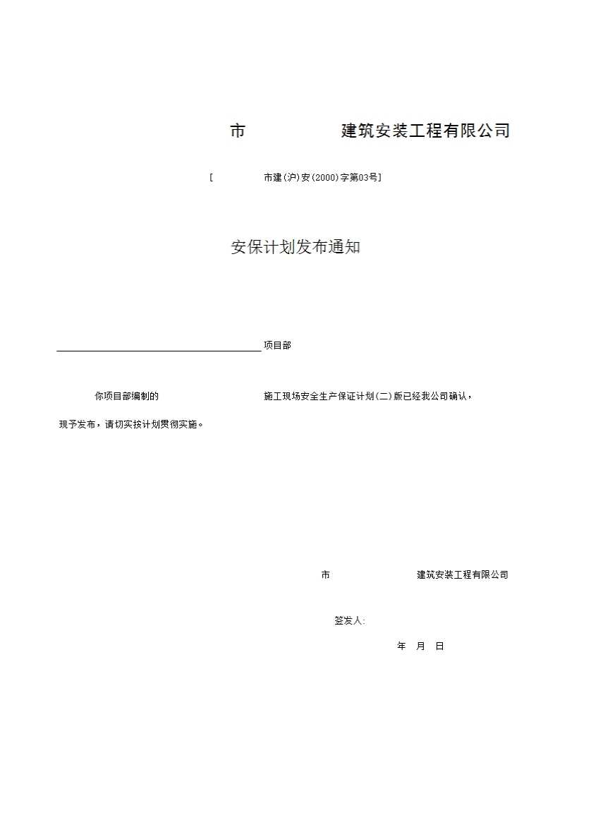 表格名称:安保计划发布通知