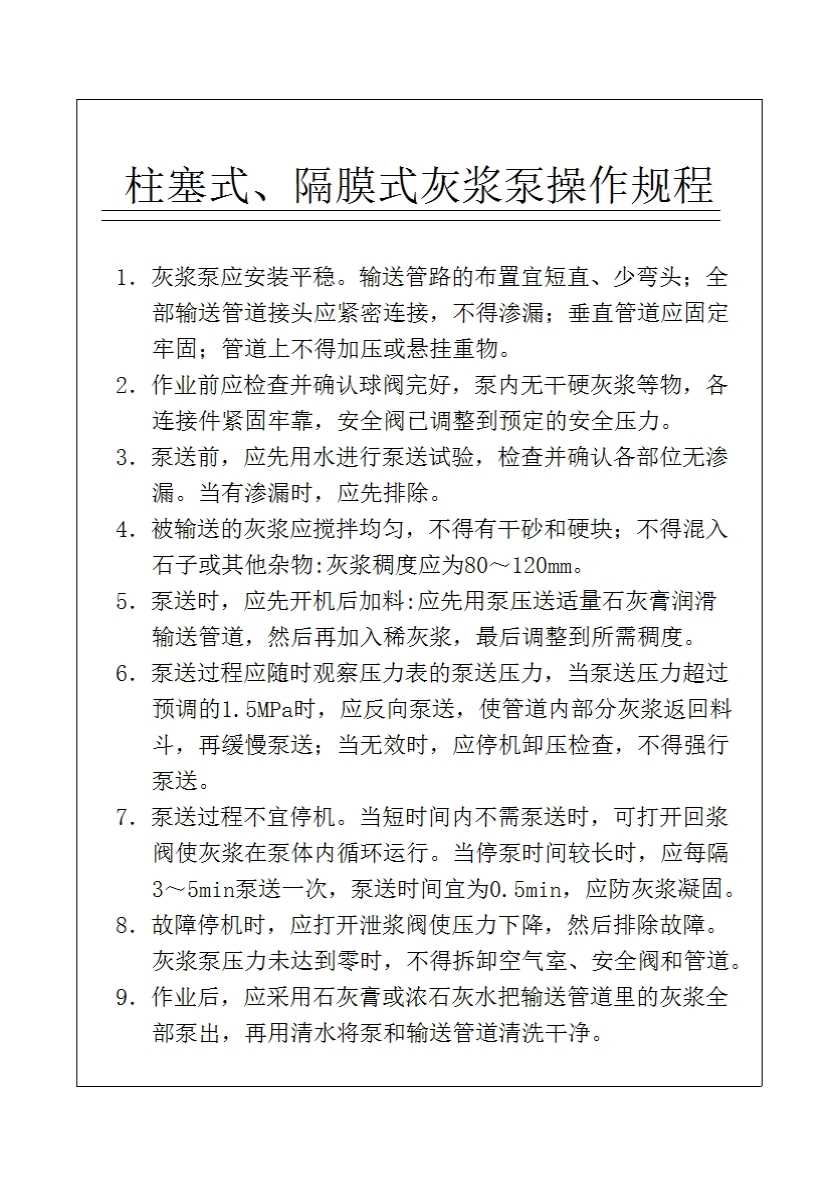 表格名称:4 柱塞式、隔膜式灰浆泵操作规程